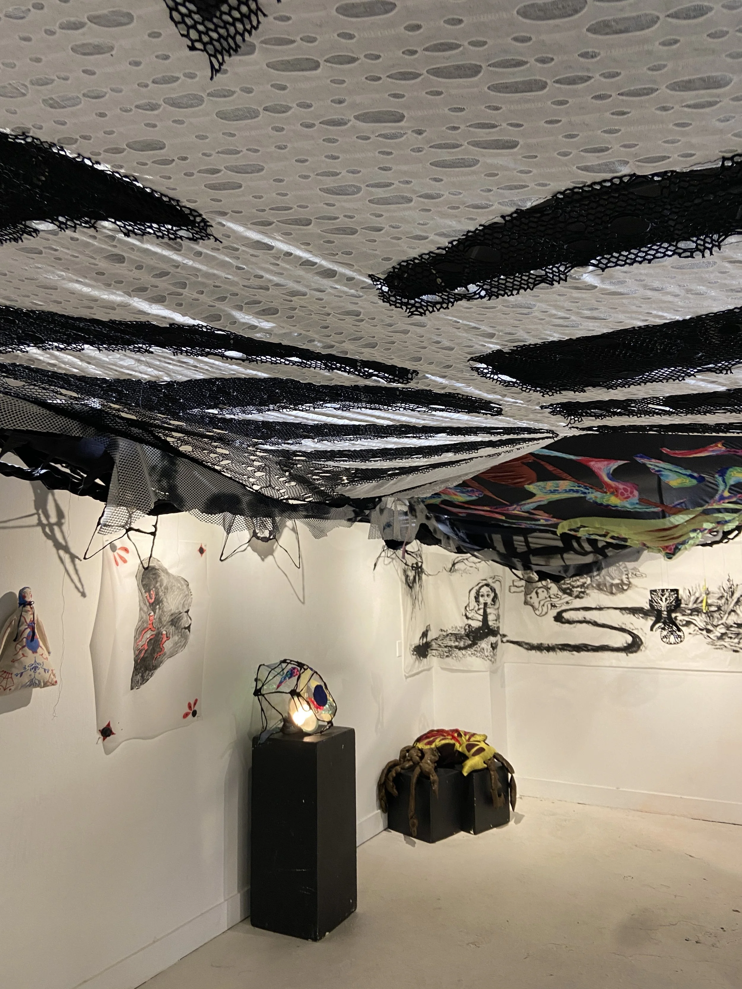 Building an “other” world inspired by dreams stories of underworlds and strange liminal spaces. Through fibre installation paper and painting.